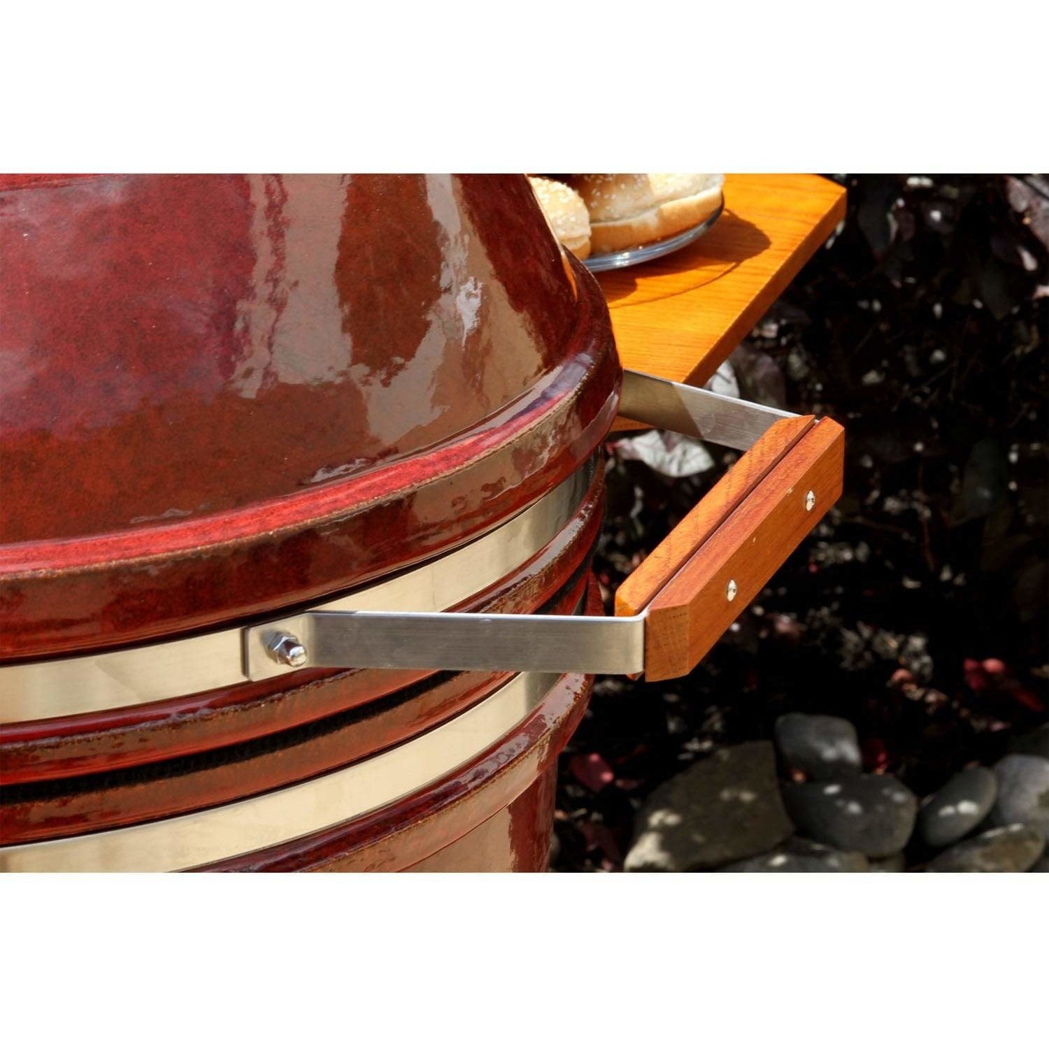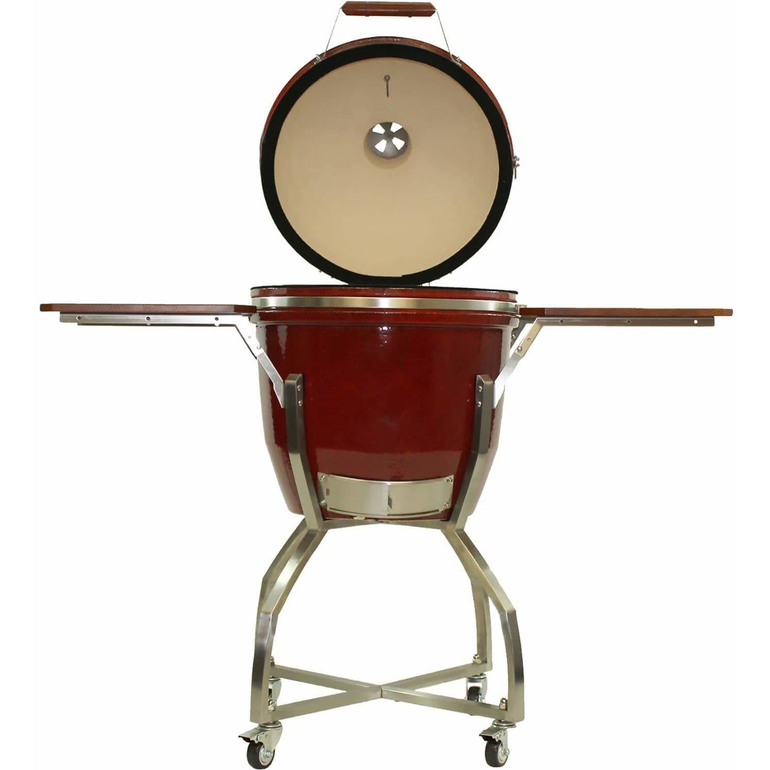 - Bundle includes a 19 in. Kamado grill, stainless steel cart, red oak side shelves, and a grill cover