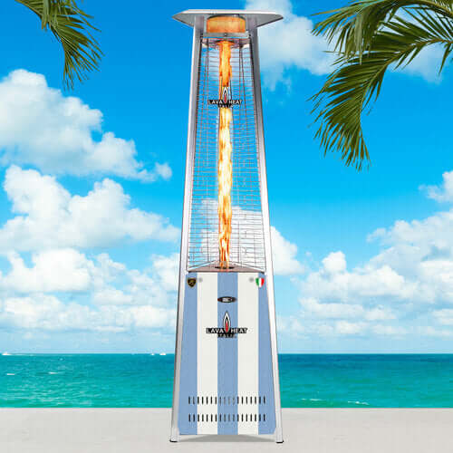 The 2G A-LINE-8RPS is our 8 ft. Commercial Flame Propane Heater in Stainless Steel. The new A-LINE series features upgraded hardware, finishes, and new eco-friendly heating options. Double-baked powder coating over stainless steel, as well as 304-grade hardware, make the A-LINE series a workhorse. With our industry-first 5-stage eco-burner and upgraded IR remote system, the A-LINE is the most technologically advanced heater on the market. A Borosilicate Glass tube encases our 4-foot adjustable “Column of Flame” that produces 66,000 BTUs of heat for up to 14 hours with a Propane Tank. The sleek 360-degree design provides superior heat distribution in a 36 square foot area. Touch-to-Start Technology accompanied with our Tilt Switch-Auto-Shutoff makes it safe, simple, and fast. The patented easy-snap magnetic door makes it easy to access the units’ burner assembly. Available in supreme finishes and various accessory options makes this A-Line is a need for your outdoor space.