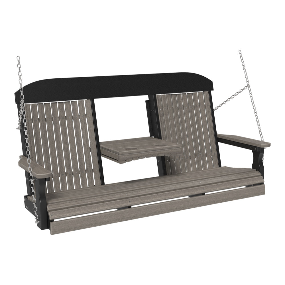 Enhance your outdoor space with the LuxCraft 5′ Classic Swing - 5CPS, a perfect blend of timeless style and modern convenience. Whether next to a Colonial gazebo or on the porch of an Arts & Crafts bungalow, this swing comfortably seats up to three people and features a flip-down center console for added functionality. Enjoy both style and utility with this beautiful swing.