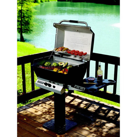 Broilmaster H3 Deluxe Natural Gas Grill On Black In-Ground Post With Black Drop Down Side Shelf - H3PK2N