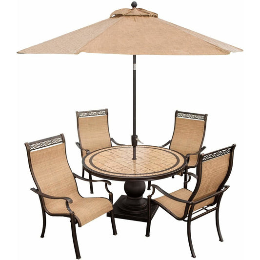 Hanover manor 7 piece 6 sling swivel rockers 60 inch round cast table umbrella base MANDN7PCSWRD6-SU