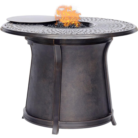 Hanover 5pc High Fire Pit Set 6 Swivel Chairs 48-Inch Round Cast Top Fire Pit Tbl