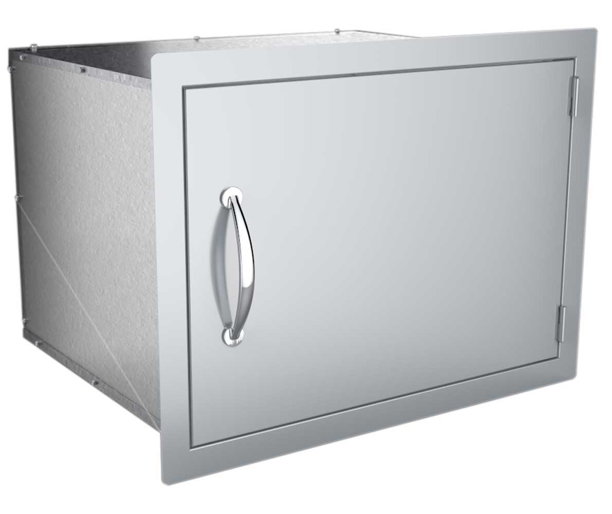 Sunstone Single Horizontal Dry Storage Pantry, allows you to store dry goods, cookware, in a fully enclosed environment. Your items are safe from pests and the weather, designed to be built-in under your grill or other outdoor kitchen components, while the large inner enclosed box adds much-needed added storage and a finished clean look. Dry Storage can be installed to open either Left or Right, so it can be customized to work within your outdoor kitchen design. (some assembly required)