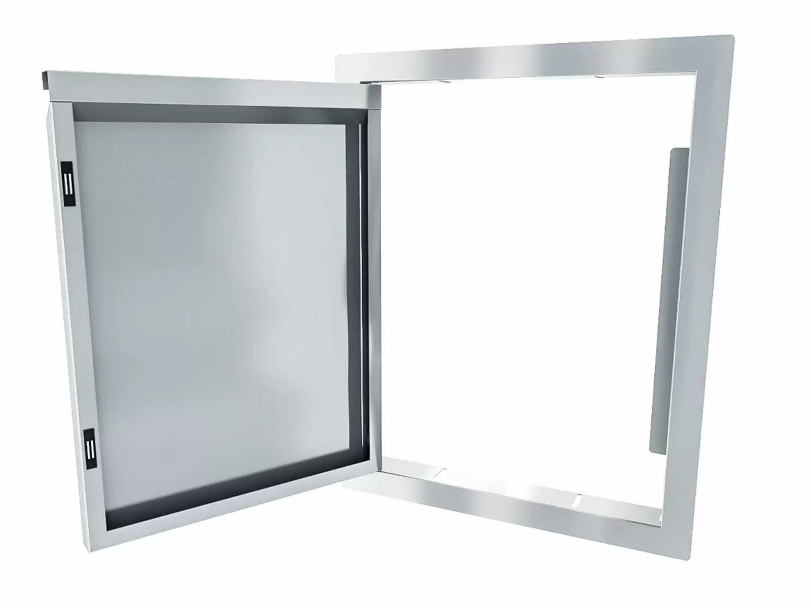 Transform your outdoor cooking space with the Sunstone Aruba Series Sleek Style 16-Inch Stainless Steel Left Swing Single Door - ARU-DV16. This high-quality door combines functionality with modern design, perfect for enhancing the organization and style of your outdoor kitchen setup.